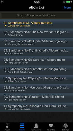 √√带有知识的音乐播放器√√ 您将聆听到9位伟大作曲家创作的人类音乐精华《世界十大交响乐》, 您将看到伟大作曲家们的肖像, 您将阅读伟大作曲家们的介绍. 您将放松心情, 启迪智慧, 开拓思维, 恢复活力! 听一听, 为了您和您的孩子! √√应用特色√√ -高质量的音乐 -播放顺序: 随机播放或按顺序播放 -重复模式: 单曲重复, 循环播放所有曲目, 循环播放收藏曲目 -音乐列表: 作曲家音乐列表, 收藏音乐列表, 所有音乐列表 -搜索作曲家或曲目 -后台播放 -锁屏或播放时显示作曲家肖像 -锁屏时播放控制(播放/暂停/上一首/下一首) -摇一摇切换音乐 -睡眠定时…