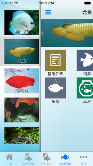从入门开始循序渐进的方式让你变成一个养鱼达人。有入门篇、进阶篇、品种详解篇,里面包含龙鱼、鹦鹉鱼、异形、小蓝鲨、三湖慈鲷、七彩神仙、罗汉鱼、丽丽、老鼠鱼、孔雀、锦鲤、魟鱼、海水观赏鱼、短稠、灯鱼、地图鱼、接吻鱼、剑尾鱼、月光鱼、玛丽鱼等21种的观赏鱼基础知识、特征、分类及选购、水草及养鱼器材、水族箱、饲养、繁殖、鱼病、品种以及500多张鱼类高清图片,让你大饱眼福。 离线浏览, 不耗流量,速度快,不用联网一样可以浏览,无广告,无插件 家中养鱼当做生活上的闲情逸致,看着生气蓬勃的鱼在水中游来游去,也能让人感受到生气盎然,尤其是在外面经历人情冷暖,回家后看到鲜艳的鱼也可以让自己从死气沉…