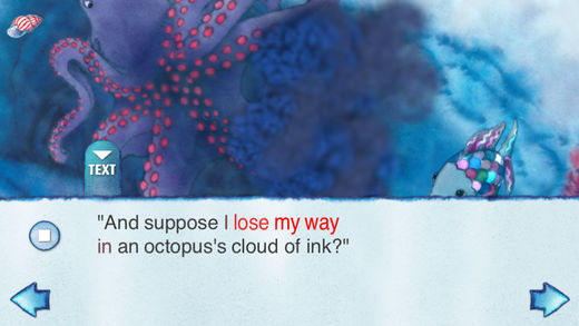 +++ Top 10 in Australia, Germany, Austria (books) +++ A new Rainbow Fish book that goes back to the beginning… meet Little Rainbow Fish! When Little Rainbow Fish can’t sleep, there’s only one thing that can help—his Mommy! Little Rainbow Fish’s mom promises to watch over him, no matter if he’s in the ink cloud of an octopus, lost in the deep blue sea, or simply having a bad dream. It works. Little Rainbow Fish is soon sound asleep. Features: * Guide the lantern fish to shine his light for the Little Rainbow Fish * Play with the underwater leaves to discover where they live * Octopus game: blow on the microphone to rescue the little one * Choose narration mode, featuring Colin Solman or read the text yourself * Read along to the highlighted words * Hear each word pronounced properly simply by touching them – ideal for learning to read! * Perfect for children age 3+