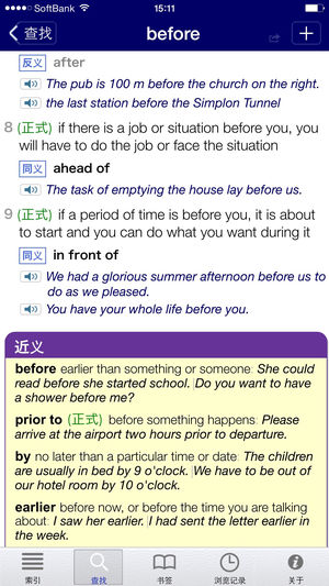 朗文当代高级词典(第5版)+ Longman Activator Thesaurus 学习英语的最佳工具,能随时随地使用。 新增同义词词典和搭配词典。 朗文为英语学习者出版的旗舰词典在2009年全面更新以后,推出iOS版,让您随时使用这本最新的词典,提高英语水平。 词典详情: ● 收录230,000个单词、短语、释义,超越任何其他学习者词典 ● 165,000个选自朗文语料库网络 (Longman Corpus Network) 的例证,真实自然,让您了解如何在现实生活中使用英语 ● 释义只使用2,000个常用词写成,简明易懂 ● 5000 verb tables ● 标注口语和书面语中…