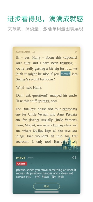 扇贝阅读,为你推送原汁原味的英语短文和原著,它不只是一个“学英语”的APP,更是一个帮你开始“用英语学”的APP。 【英文原著】 经典的英文原著,带你感受原汁原味的阅读体验。 【精选短文】 精心编排的英语短文,让你在轻松的阅读中收获学习和成长。 【学习计划】 阅读中的生词可以即时添加到自己的学习计划中,利用扇贝强大的记忆系统进行学习。 【重难点强化】 文章的重点单词、各类考试(四六级、考研、托福GRE雅思等)的难点单词,都会由系统高亮展示,帮助你查缺补漏。 【图表反馈】 你每天的学习进度,包括完成的文章数、被激活的单词数,都会通过图表生动展示。 【阅读计划】 我们还会协助你制定阅…