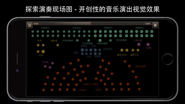 贝多芬第9交响曲呈现德意志唱片公司四个传奇录音版本。通过一个卓越的应用,使您前所未有地领悟这一标志性作品。 贝多芬第9交响曲特色功能包括: 比较四次演出:四次录音跨越50年,任何时刻,轻轻一触即可切换 – 聆听一个音符开始在一个十年,结束在另一个十年。 发现“节拍地图”:突破性的演出视觉化,显示了音乐进行中乐团不同部分的脉冲。 探索音乐:贝多芬第9交响曲带您倘佯在贝多芬的晚期杰作中 – 跟随乐谱或1825年的手稿,精确与音乐同步。 iPad可用的额外精彩功能: 专家加盟:观看超过90分钟专门摄制的音乐家,作曲家和伟大的指挥家,包括约翰•艾略特•加德纳,古斯塔沃•杜达梅尔和柏林爱乐…